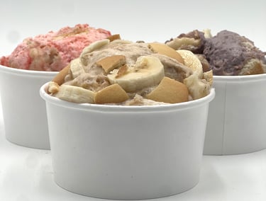 Signature whipped Ube pudding with a hint of coconut, vanilla wafers and bananas.